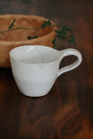 白樺のかごに井山さんのカップ